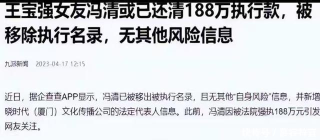 在王宝强拍电影的途中,知道王宝强受了多大的压力,所以他一直在默默背后的支持他。 在2023年的时候,冯清因为公司纠纷成为了被执行人,那段时间第二个马蓉的骂声瞬间朝他袭来。 不过冯清对于,这件事情没有躲藏,也没有让王宝强替自己买单。